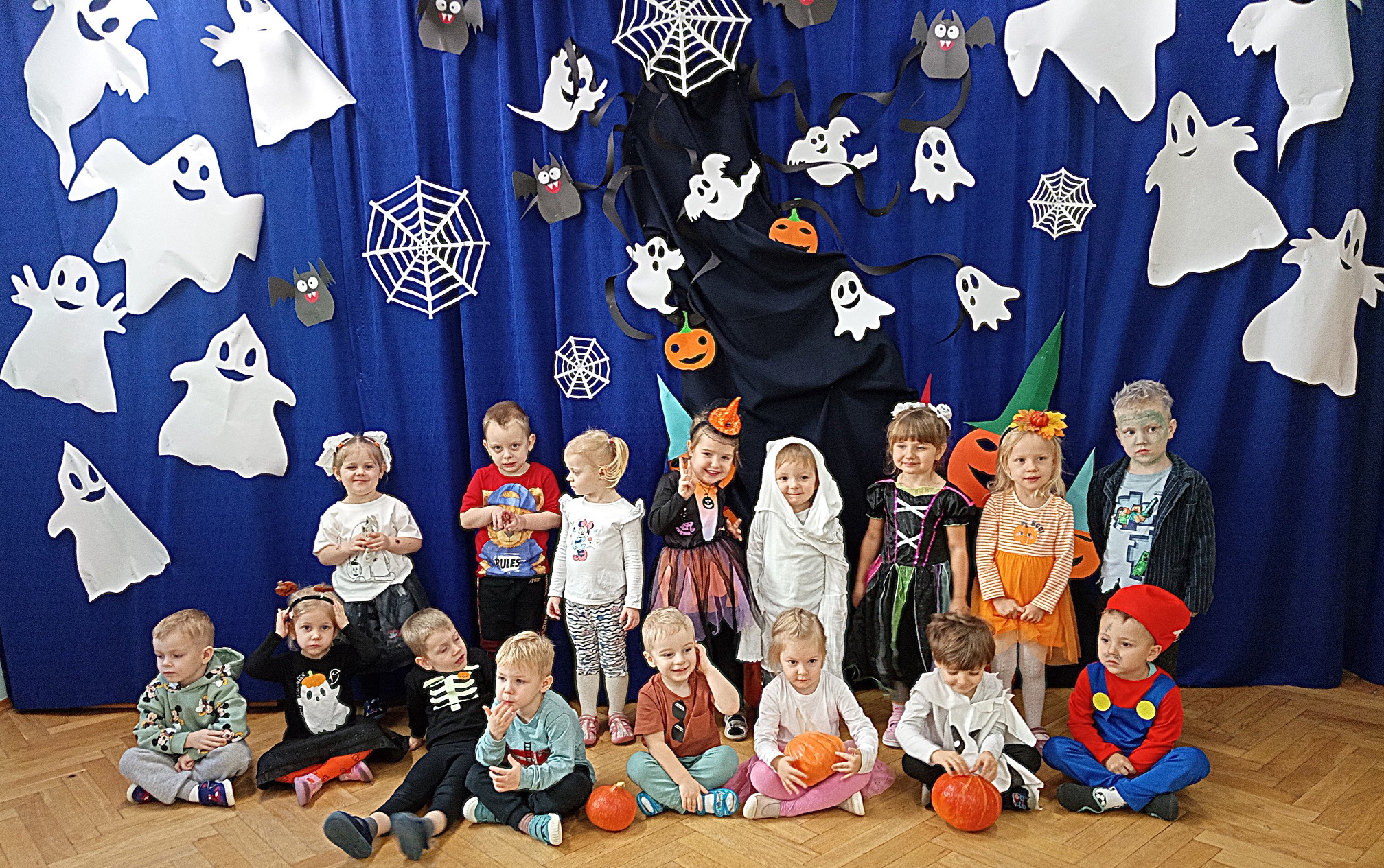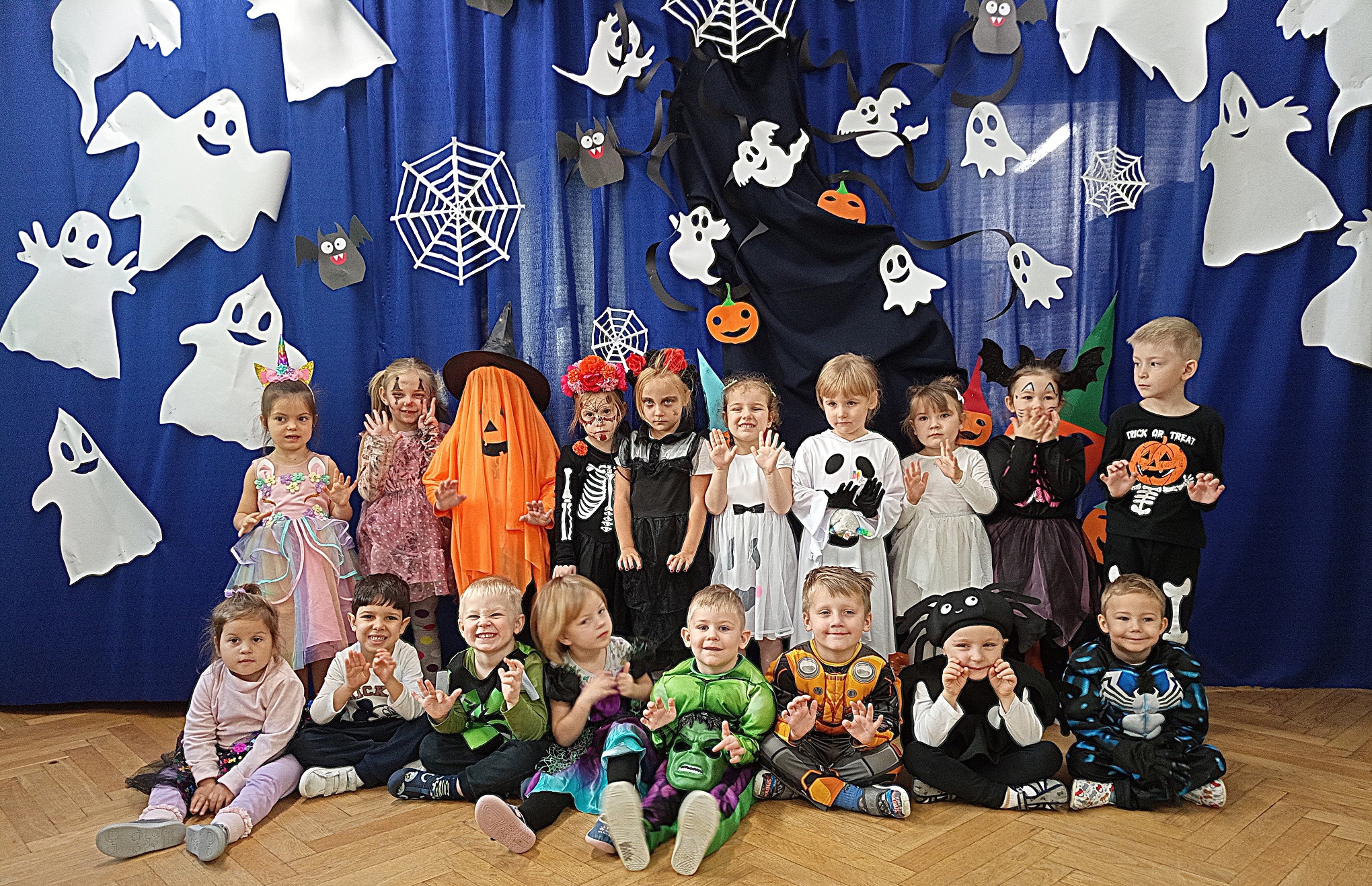 Ostatniego dnia października, zgodnie z tradycją naszego przedszkola przedszkolaki bawiły się na Balu Dobrych Duszków. Dzieci zaprezentowały kolorowe i oryginalne stroje, które zostały uwiecznione na zdjęciach. Dzieci brały udział w zabawach ruchowo - muzycznych; witały się różnych częściami ciała, skradały się na paluszkach, słuchały tajemniczych odgłosów, aby rozwiązać zagadki; podawały czapkę czarownicy; "zamiatały" liście miotłą Baby Jagi oraz szalały przy ulubionych muzycznych hitach.