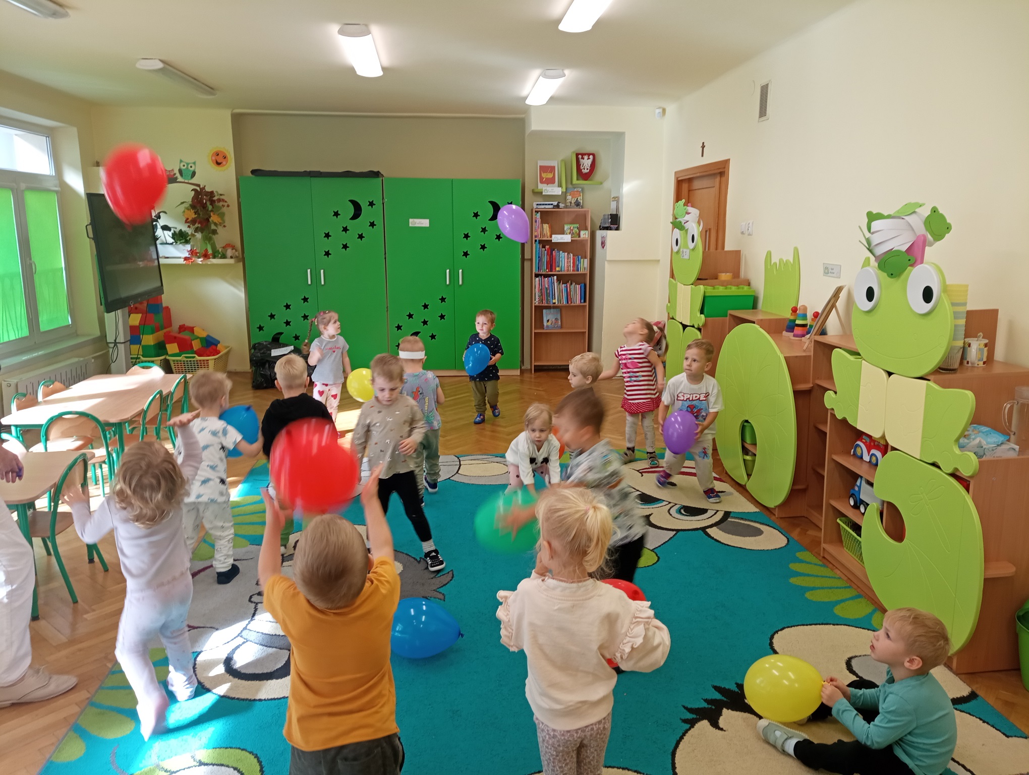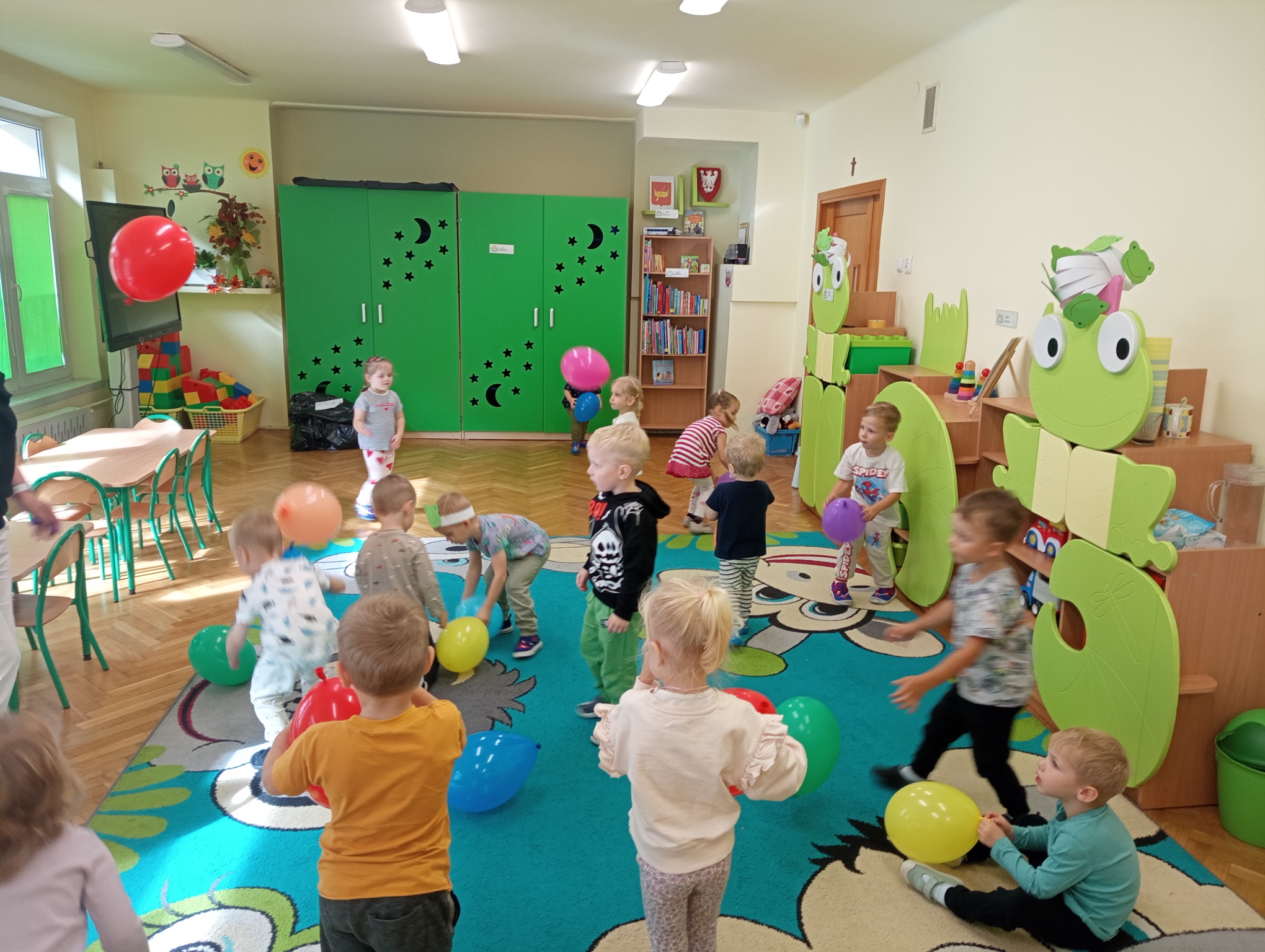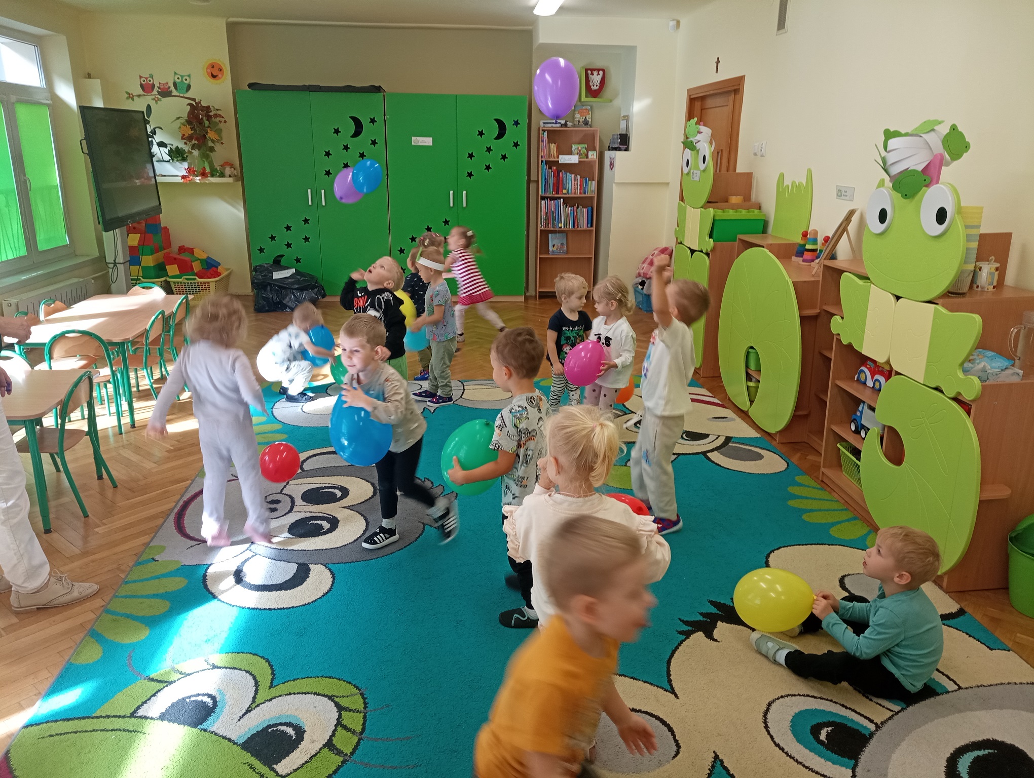 Nasi milusińscy z najmłodszej grupy w piątek 19 września świętowały Dzień Przedszkolaka. "Żabki" tańczyły, ilustrowały ruchem piosenki, bawiły się balonami i zabawkami, ciesząc się każdą chwilą oraz pogłębiając relacje z rówieśnikami.