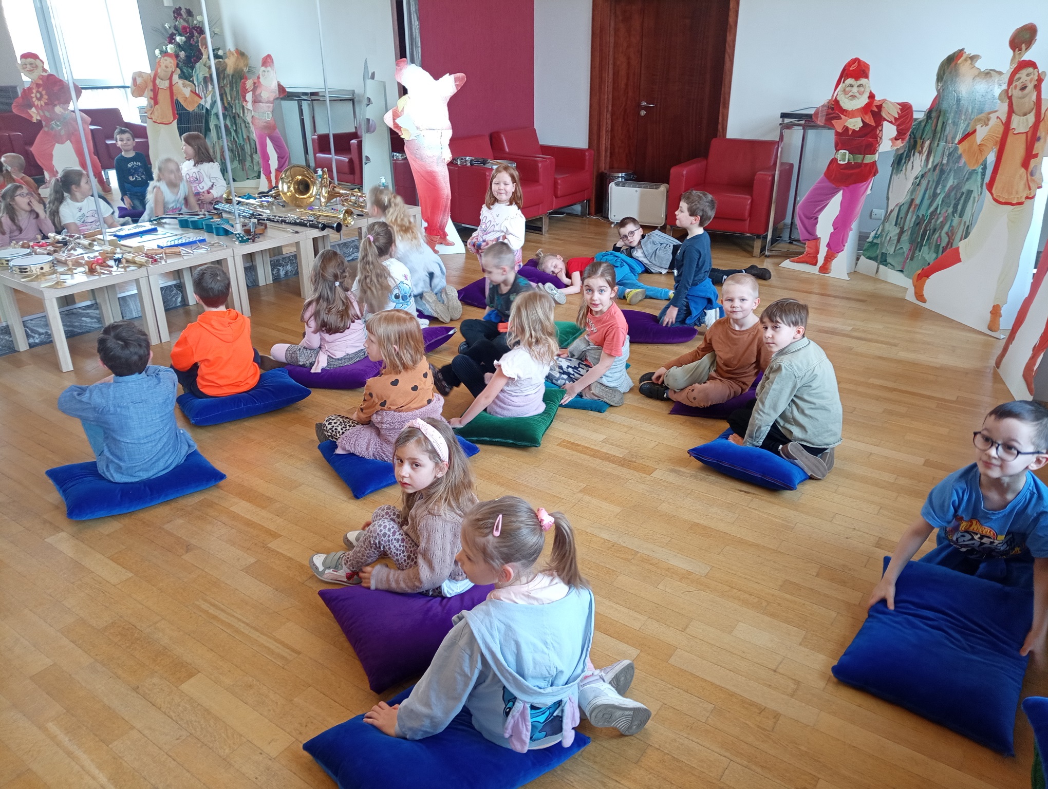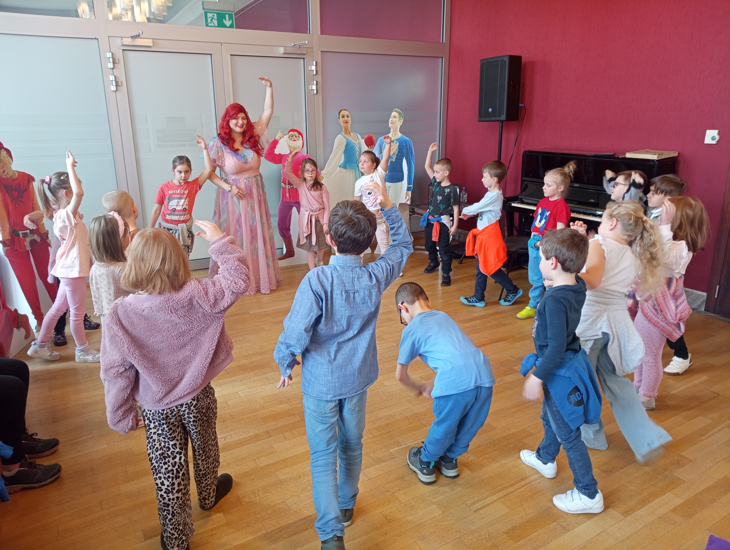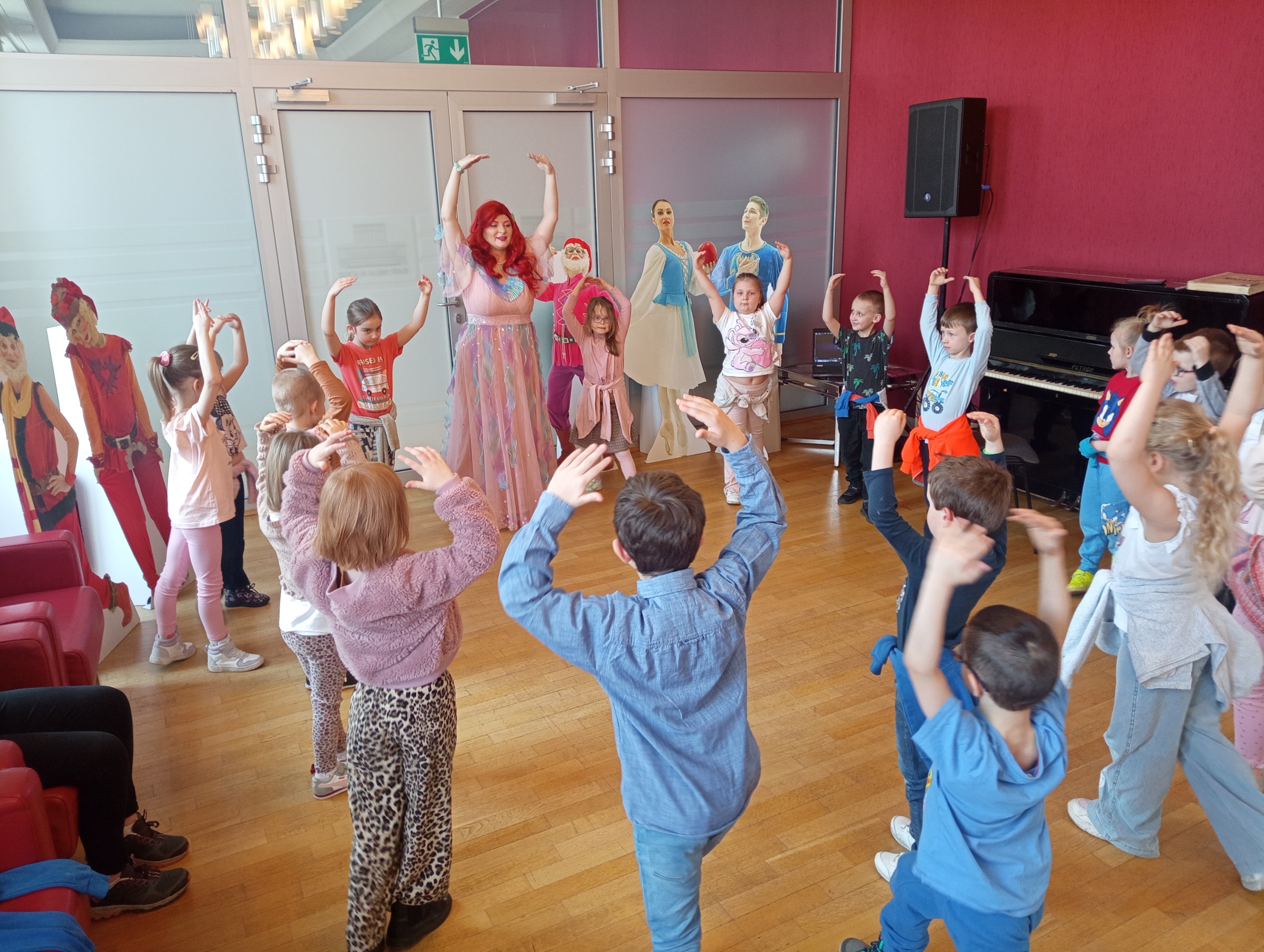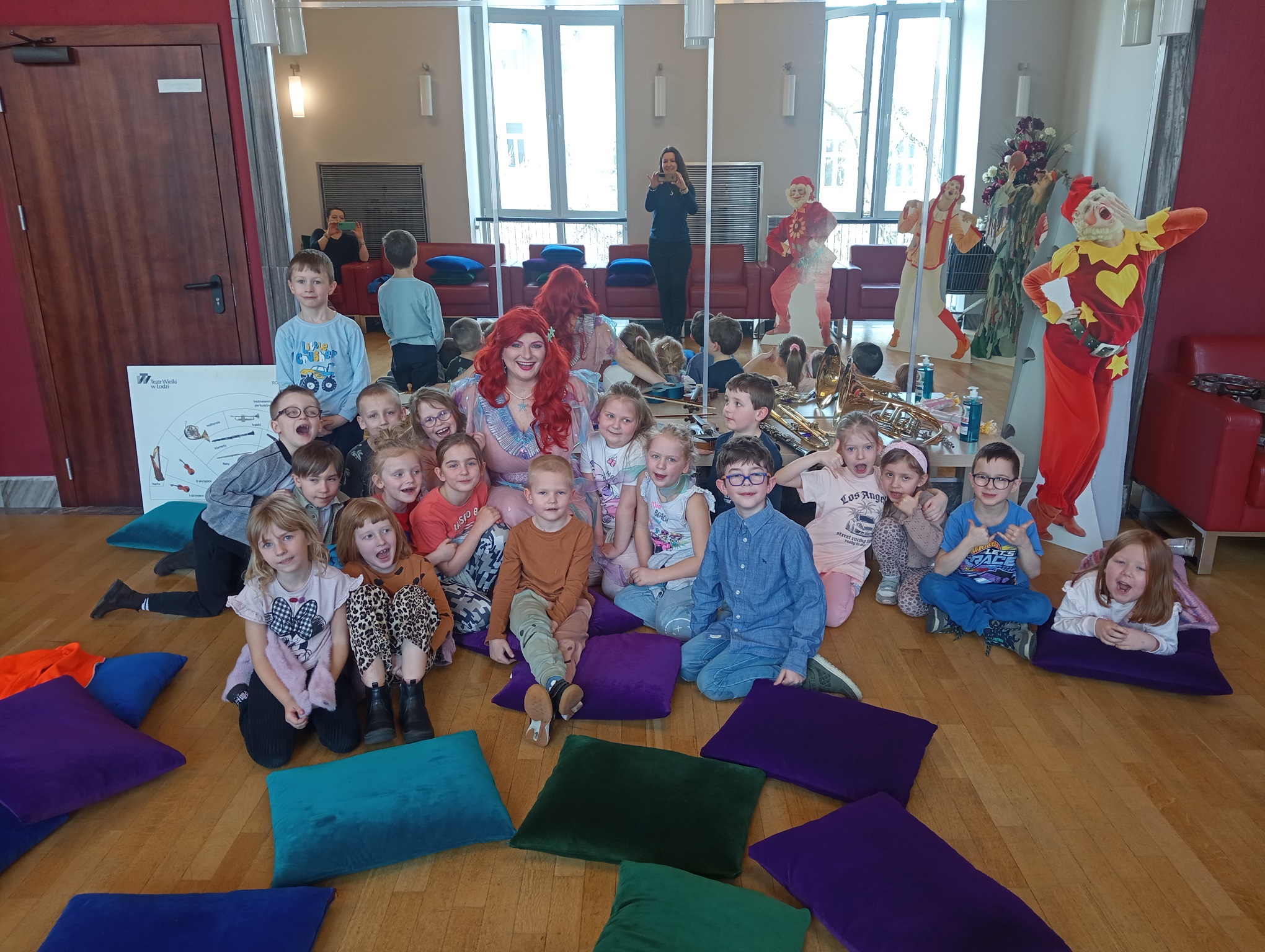 Straszaki z grupy Pandy wzięły udział w warsztatach organizowanych przez Teatr Wielki. Dzieci podczas zajęć „Opera na poduchach”, dowiedziały się czym jest opera, jak powstaje muzyka i stopniowo odkrywały świat teatru operowego. Z pomocą profesjonalistki ćwiczyły śpiew, i wykonywały ćwiczenia wzmacniające mięśnie przepony. Mogły zmierzyć się z silą głosu „Arielki”, czyli naszej edukacyjno – wokalnej przewodniczki. Przedszkolaki słuchały muzyki klasycznej oraz próbowały swoich sił w balecie. Każde dziecko mogło wybrać sobie instrument, by na nim zagrać, a ukryte talenty muzyczne dzieci, ujawniły się. Na koniec zajęć dzieci z najstarszej grupy zapozowały do wspólnego zdjęcia z Arielką.