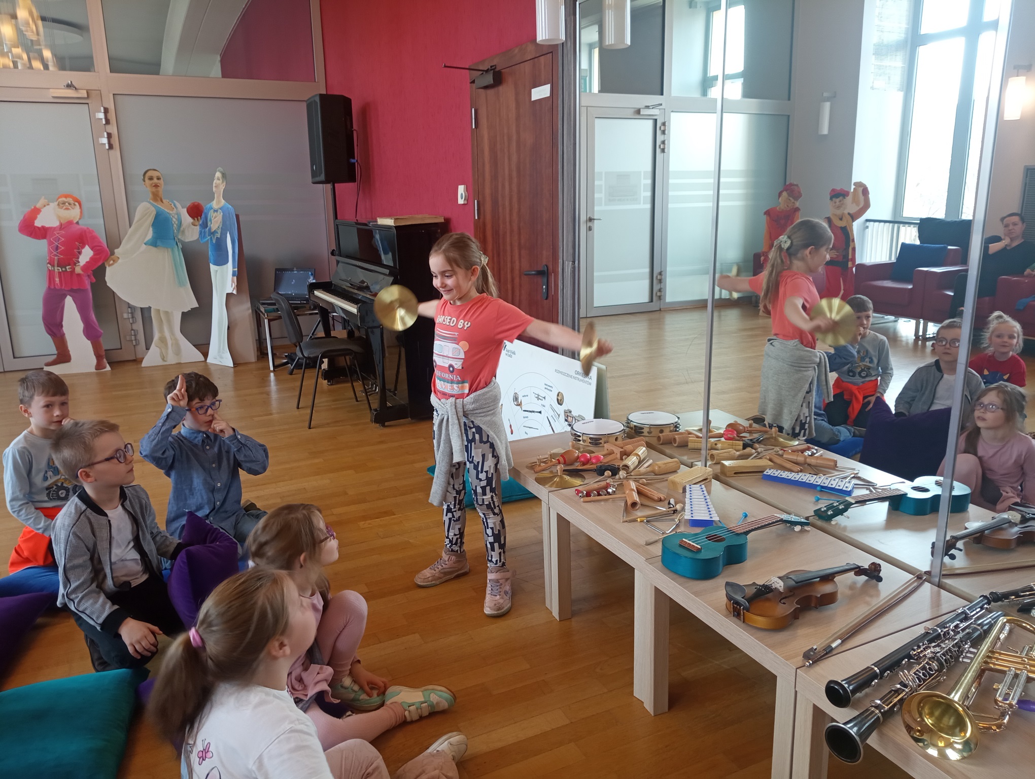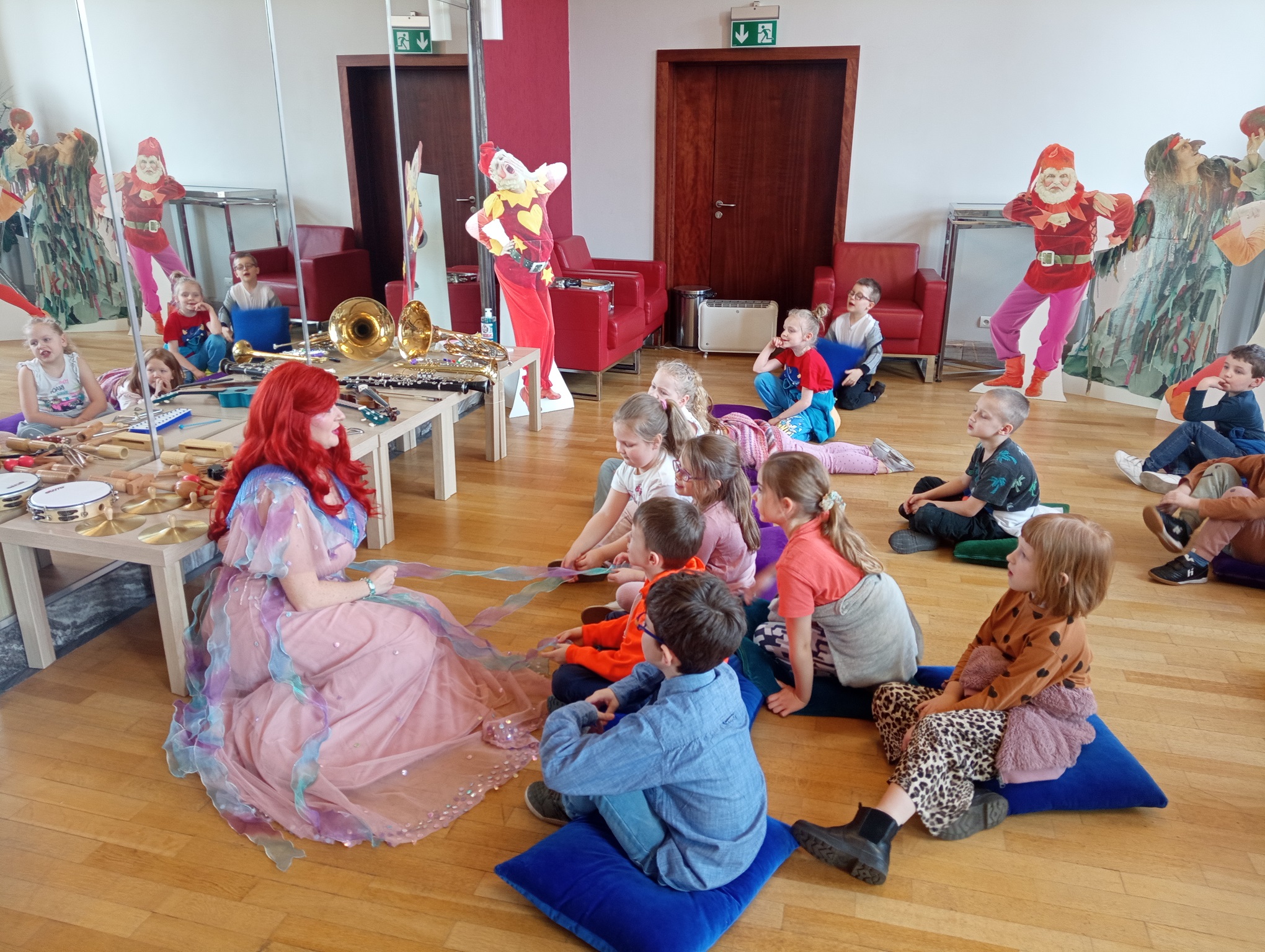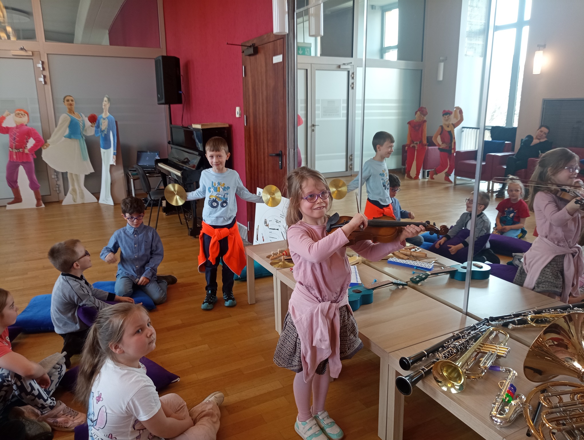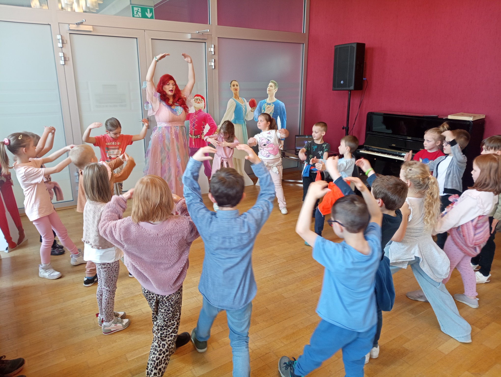 Straszaki z grupy Pandy wzięły udział w warsztatach organizowanych przez Teatr Wielki. Dzieci podczas zajęć „Opera na poduchach”, dowiedziały się czym jest opera, jak powstaje muzyka i stopniowo odkrywały świat teatru operowego. Z pomocą profesjonalistki ćwiczyły śpiew, i wykonywały ćwiczenia wzmacniające mięśnie przepony. Mogły zmierzyć się z silą głosu „Arielki”, czyli naszej edukacyjno – wokalnej przewodniczki. Przedszkolaki słuchały muzyki klasycznej oraz próbowały swoich sił w balecie. Każde dziecko mogło wybrać sobie instrument, by na nim zagrać, a ukryte talenty muzyczne dzieci, ujawniły się. Na koniec zajęć dzieci z najstarszej grupy zapozowały do wspólnego zdjęcia z Arielką.