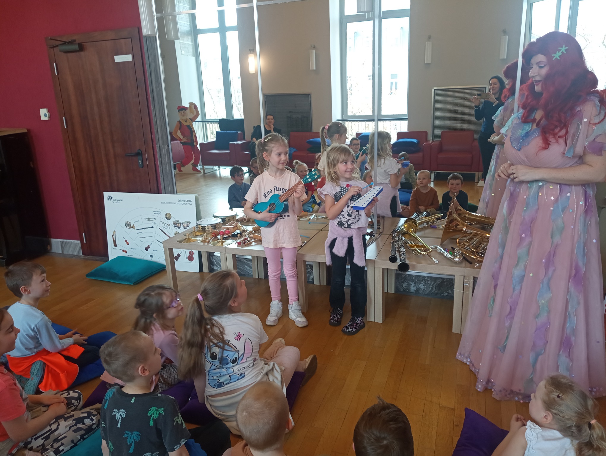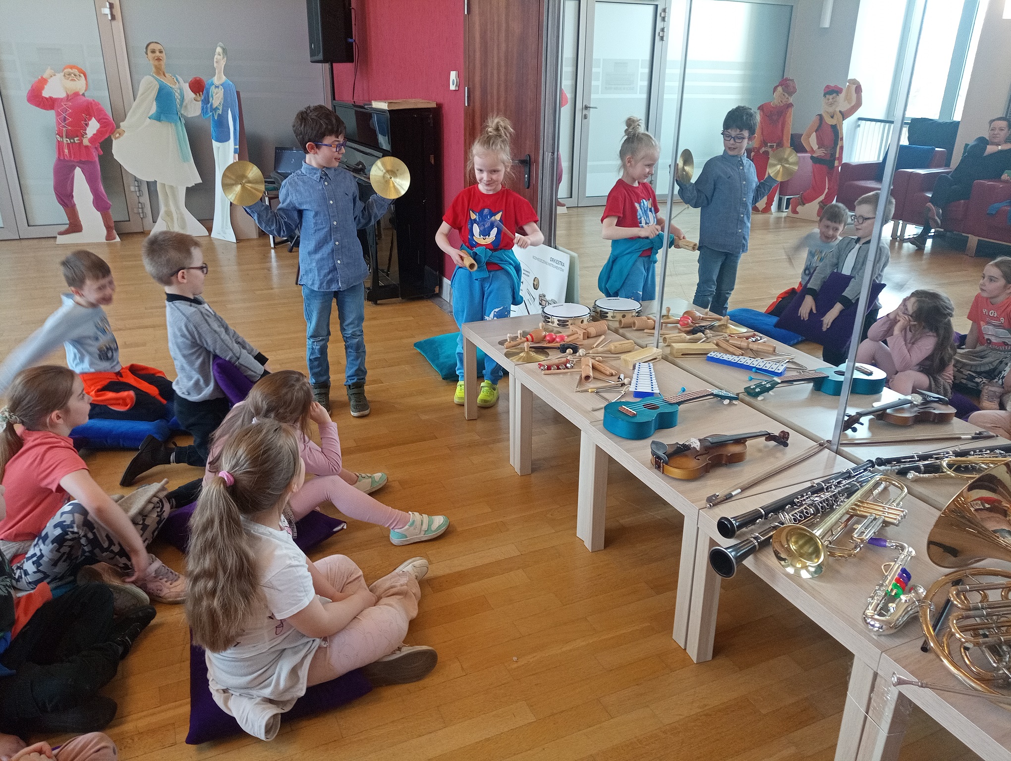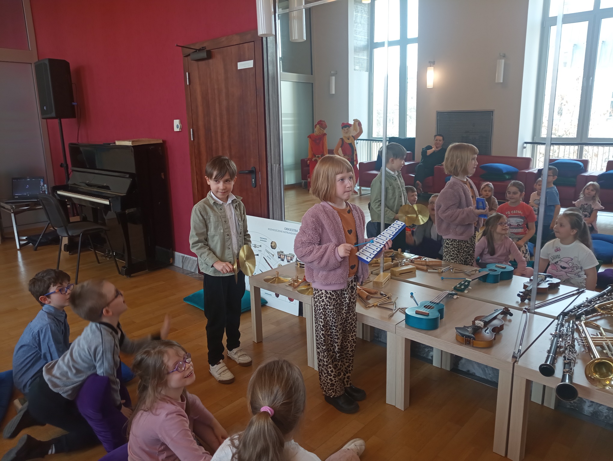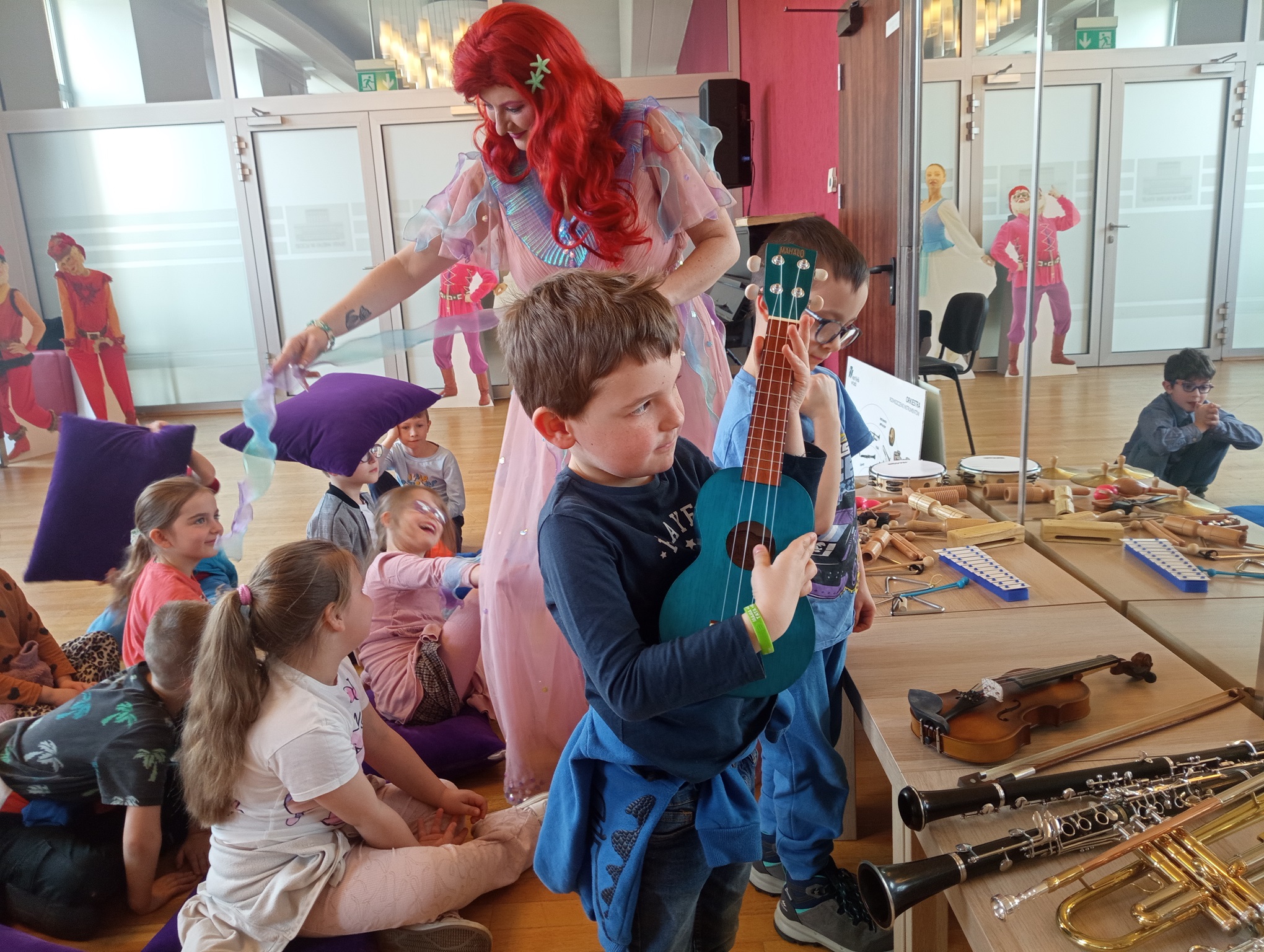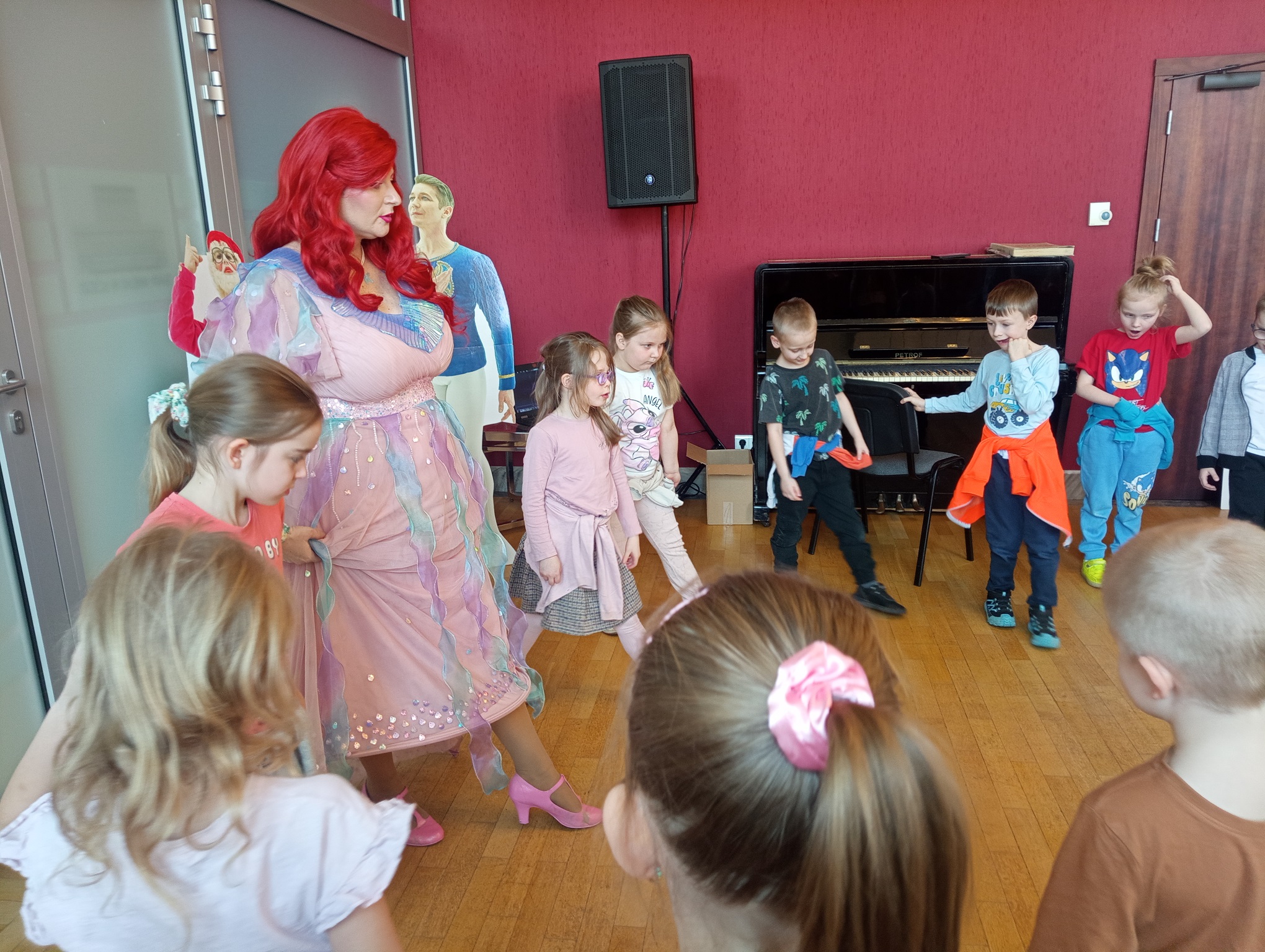 Straszaki z grupy Pandy wzięły udział w warsztatach organizowanych przez Teatr Wielki. Dzieci podczas zajęć „Opera na poduchach”, dowiedziały się czym jest opera, jak powstaje muzyka i stopniowo odkrywały świat teatru operowego. Z pomocą profesjonalistki ćwiczyły śpiew, i wykonywały ćwiczenia wzmacniające mięśnie przepony. Mogły zmierzyć się z silą głosu „Arielki”, czyli naszej edukacyjno – wokalnej przewodniczki. Przedszkolaki słuchały muzyki klasycznej oraz próbowały swoich sił w balecie. Każde dziecko mogło wybrać sobie instrument, by na nim zagrać, a ukryte talenty muzyczne dzieci, ujawniły się. Na koniec zajęć dzieci z najstarszej grupy zapozowały do wspólnego zdjęcia z Arielką.