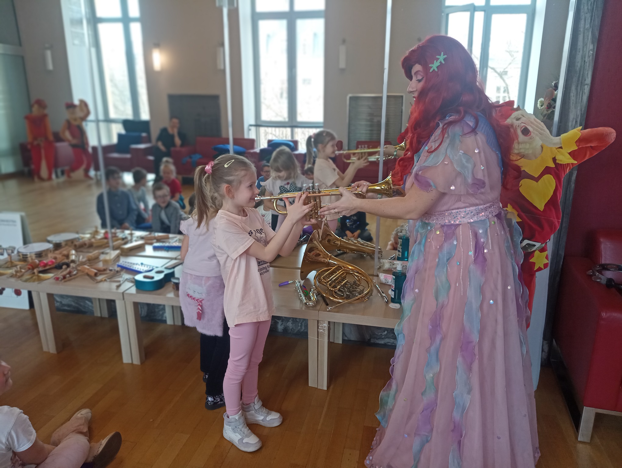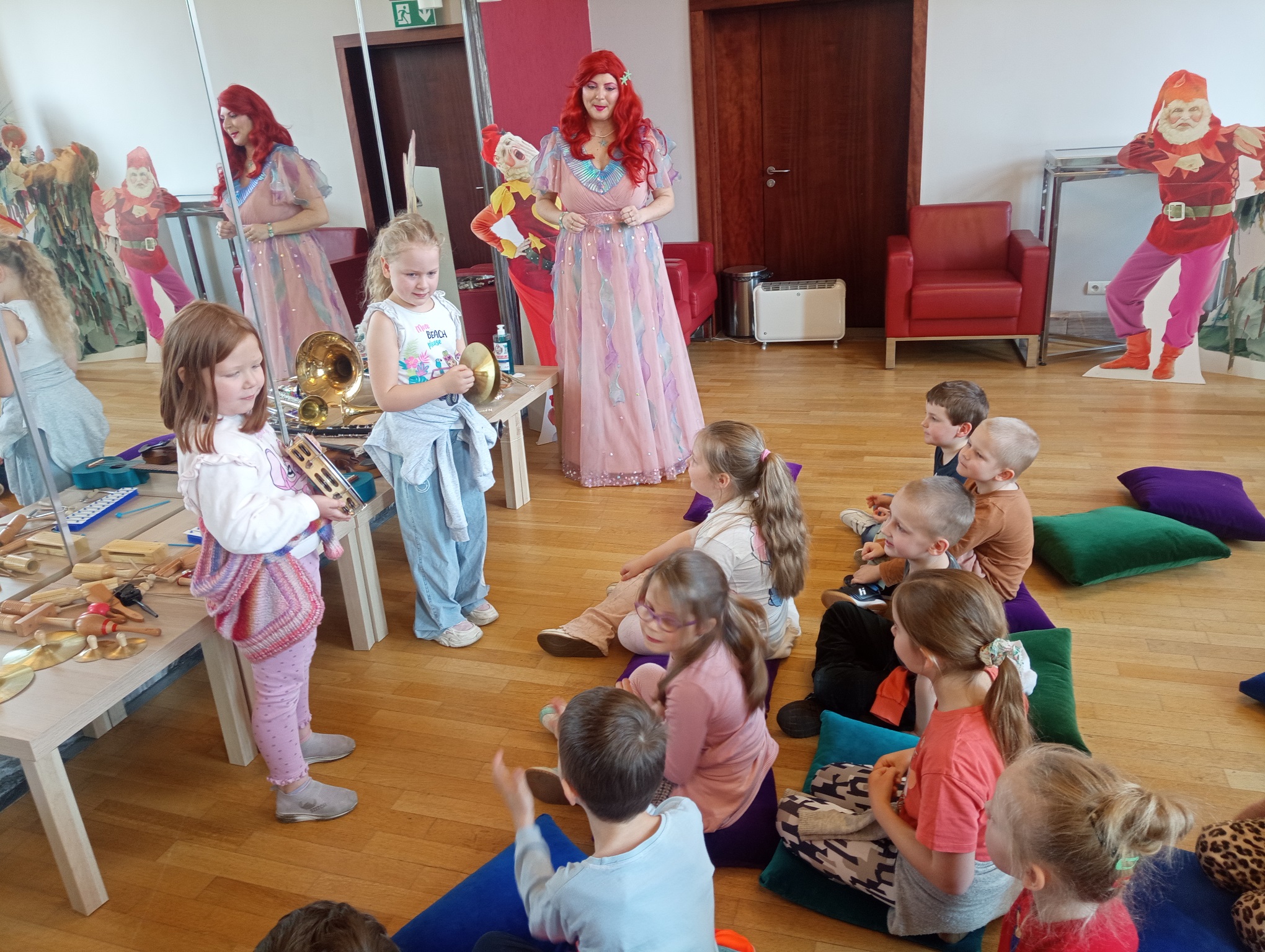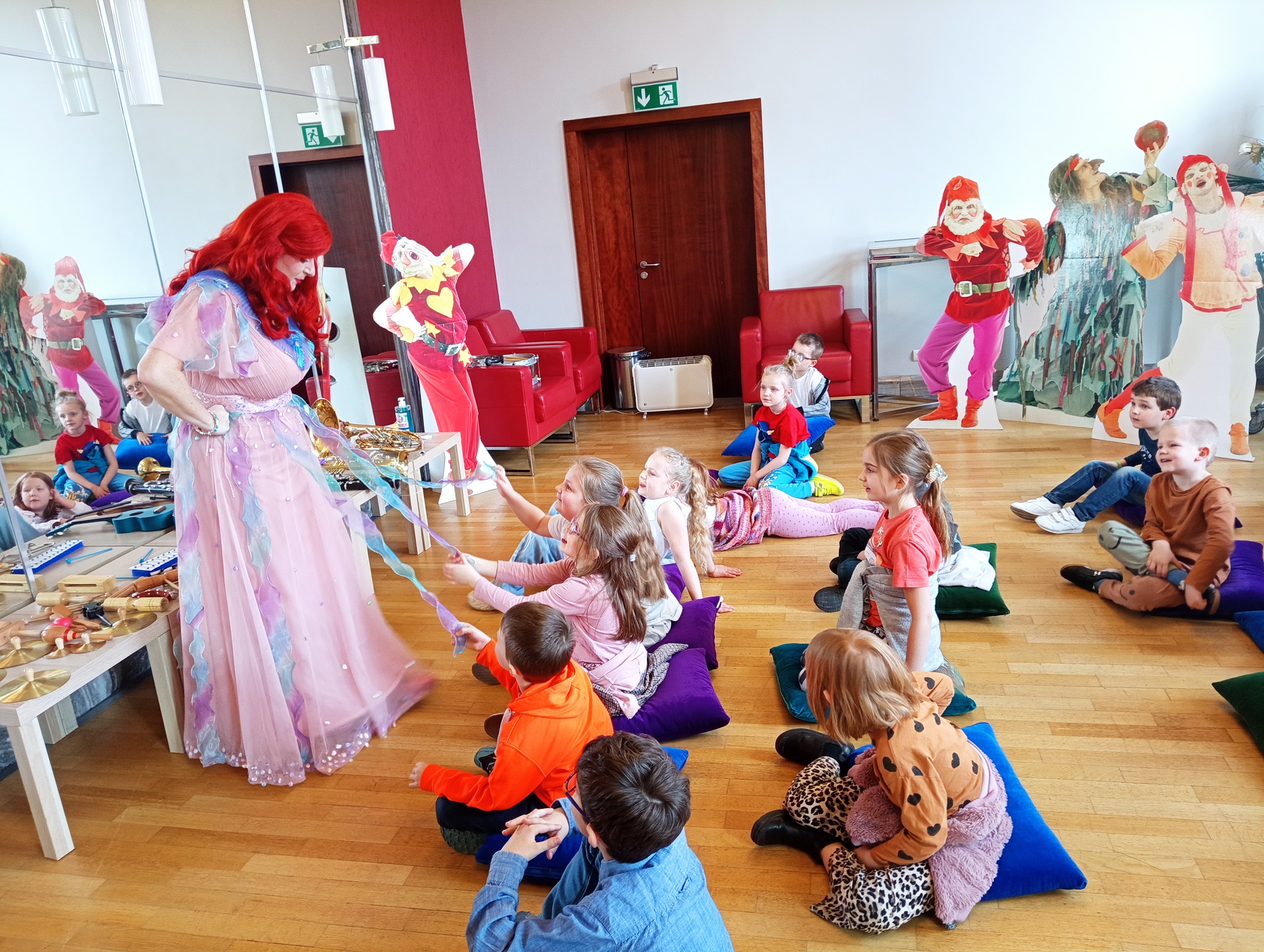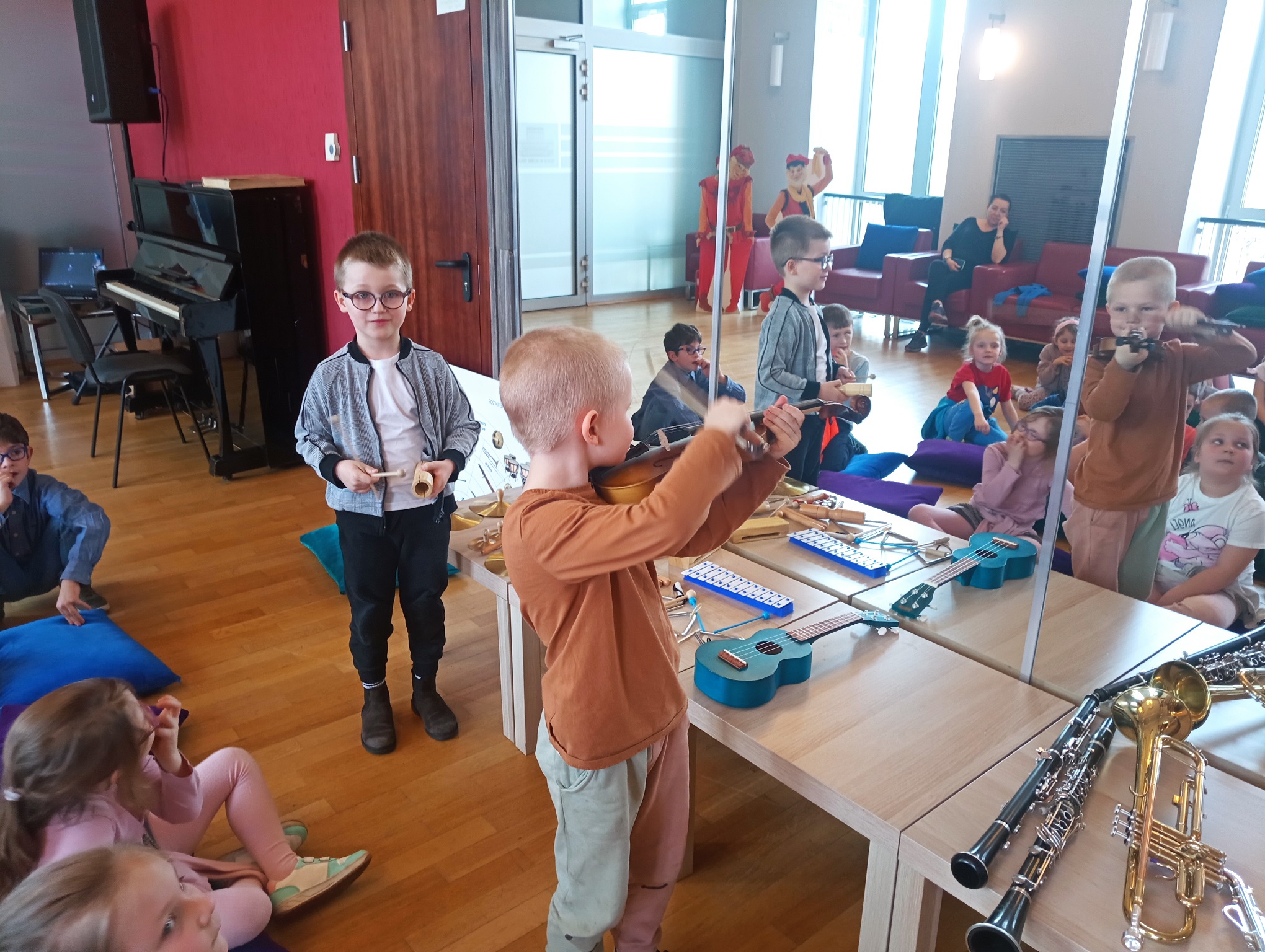 Straszaki z grupy Pandy wzięły udział w warsztatach organizowanych przez Teatr Wielki. Dzieci podczas zajęć „Opera na poduchach”, dowiedziały się czym jest opera, jak powstaje muzyka i stopniowo odkrywały świat teatru operowego. Z pomocą profesjonalistki ćwiczyły śpiew, i wykonywały ćwiczenia wzmacniające mięśnie przepony. Mogły zmierzyć się z silą głosu „Arielki”, czyli naszej edukacyjno – wokalnej przewodniczki. Przedszkolaki słuchały muzyki klasycznej oraz próbowały swoich sił w balecie. Każde dziecko mogło wybrać sobie instrument, by na nim zagrać, a ukryte talenty muzyczne dzieci, ujawniły się. Na koniec zajęć dzieci z najstarszej grupy zapozowały do wspólnego zdjęcia z Arielką.