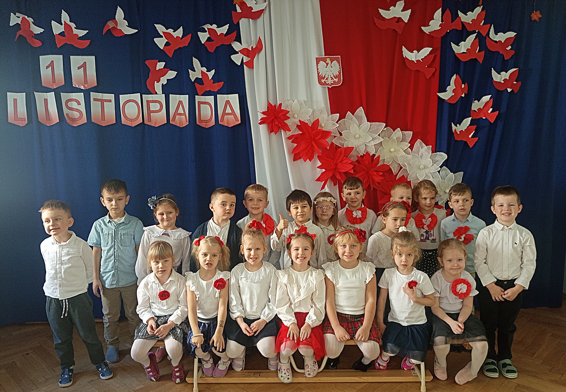 11 listopada 1918 roku, to data, którą każdy Polak powinien znać – również przedszkolak! Nauczycielki na zajęciach edukacyjnych poprzedzających 11 listopada, przybliżały dzieciom historię Polski. 7 listopada o godzinie 11:00 dzieci zebrały się na holu przedszkola, by wysłuchać prelekcji Pani Dyrektor na temat wolności i historii naszej ojczyzny. Jako dorośli wiemy, że trzeba pamiętać i szukać historycznej prawdy, ponieważ jak napisał Adam Mickiewicz: „Naród, który traci pamięć, traci swoją tożsamość”. Dzieci o godzinie 11:11 zaśpiewały hymn Polski „Mazurka Dąbrowskiego”.
