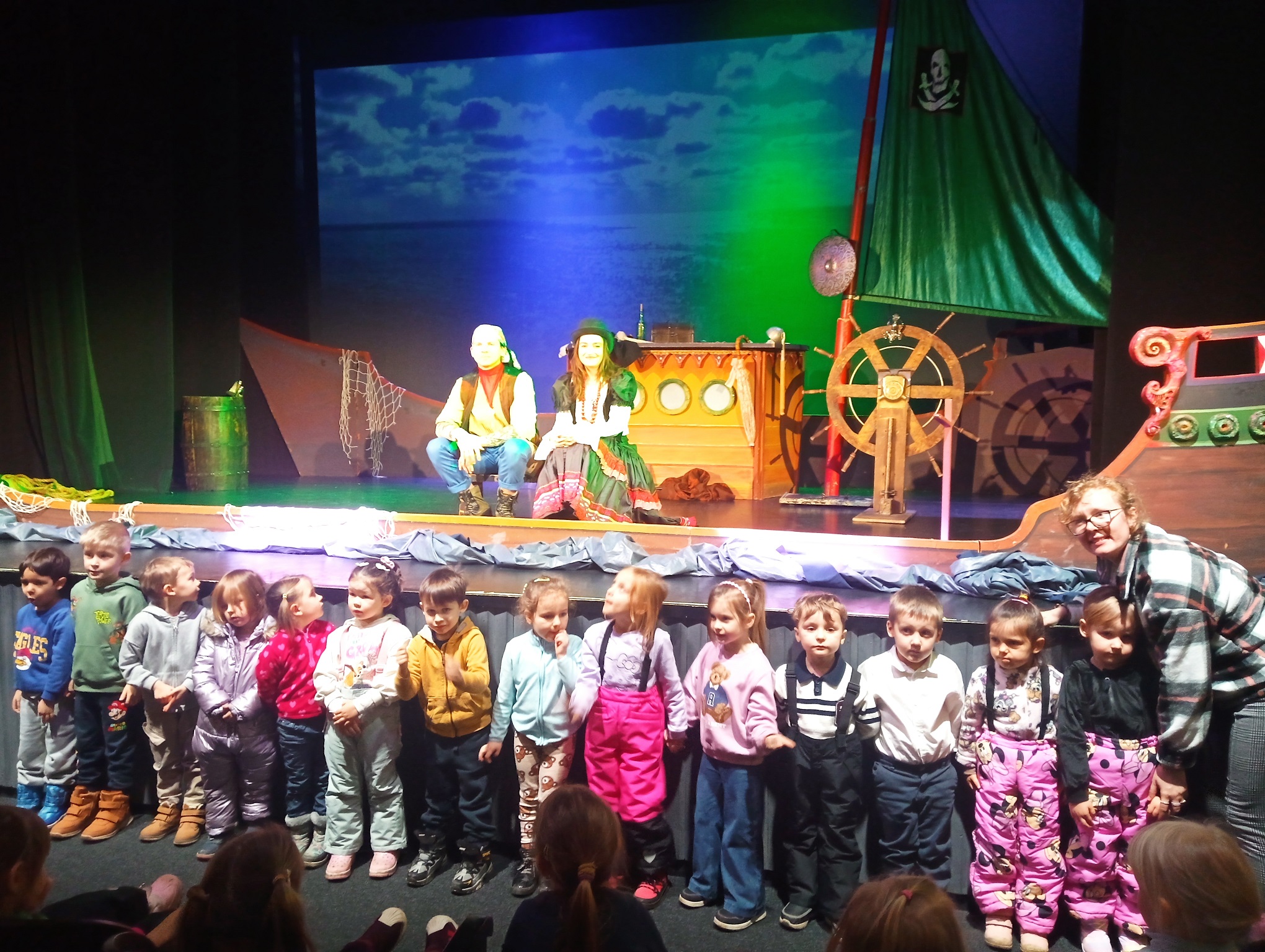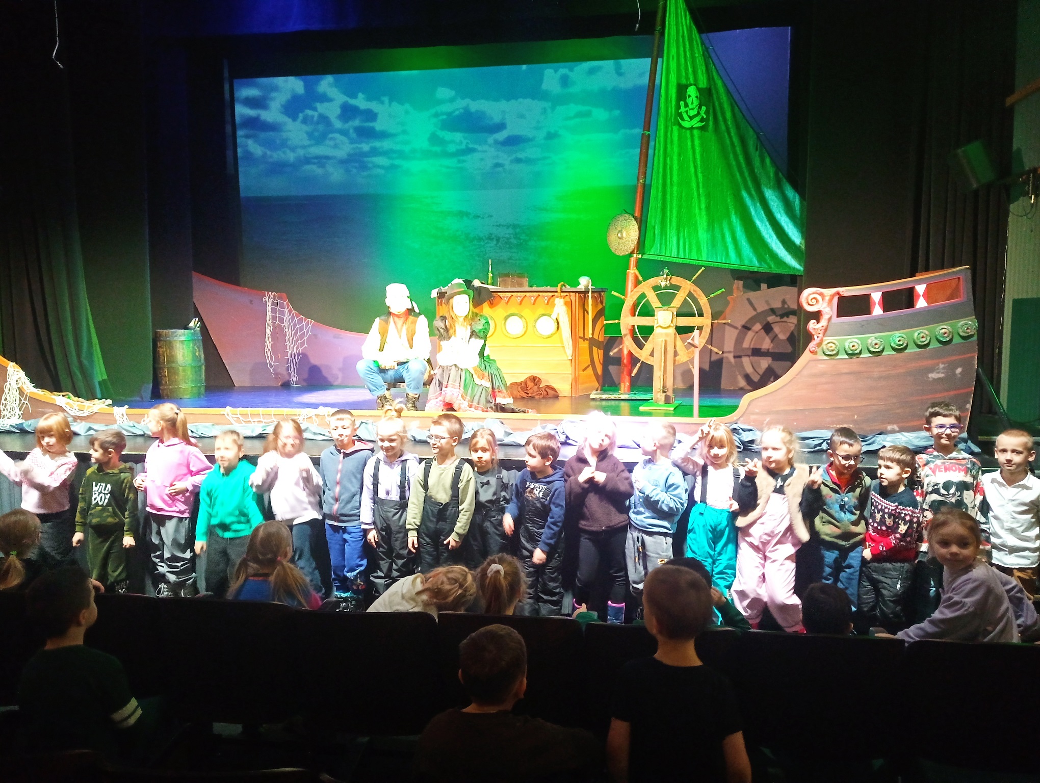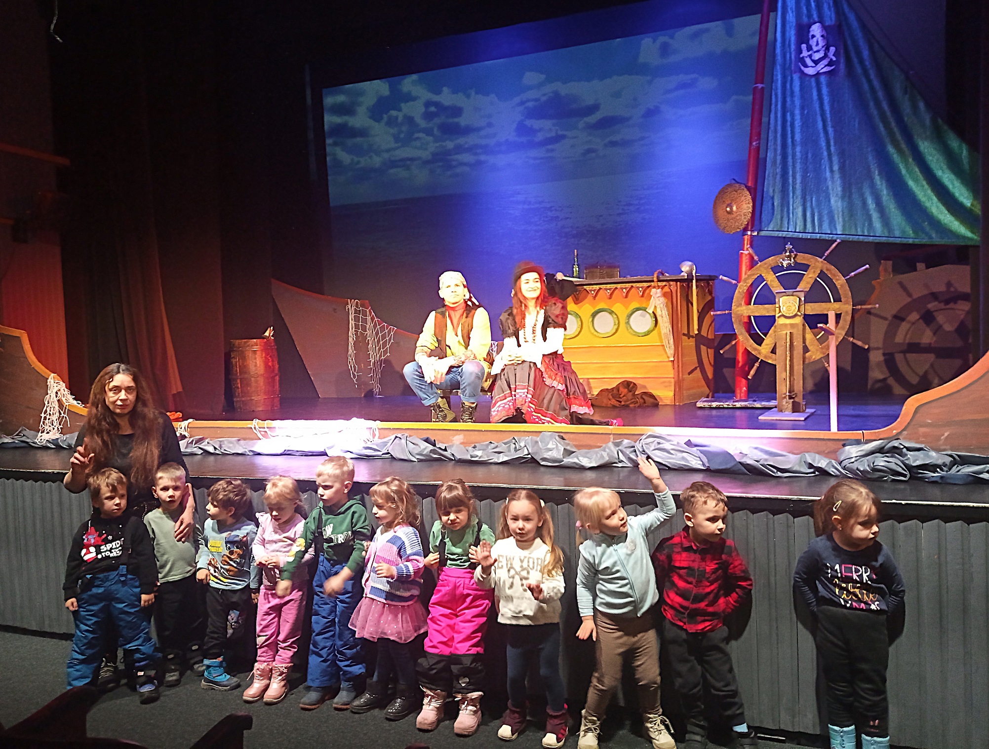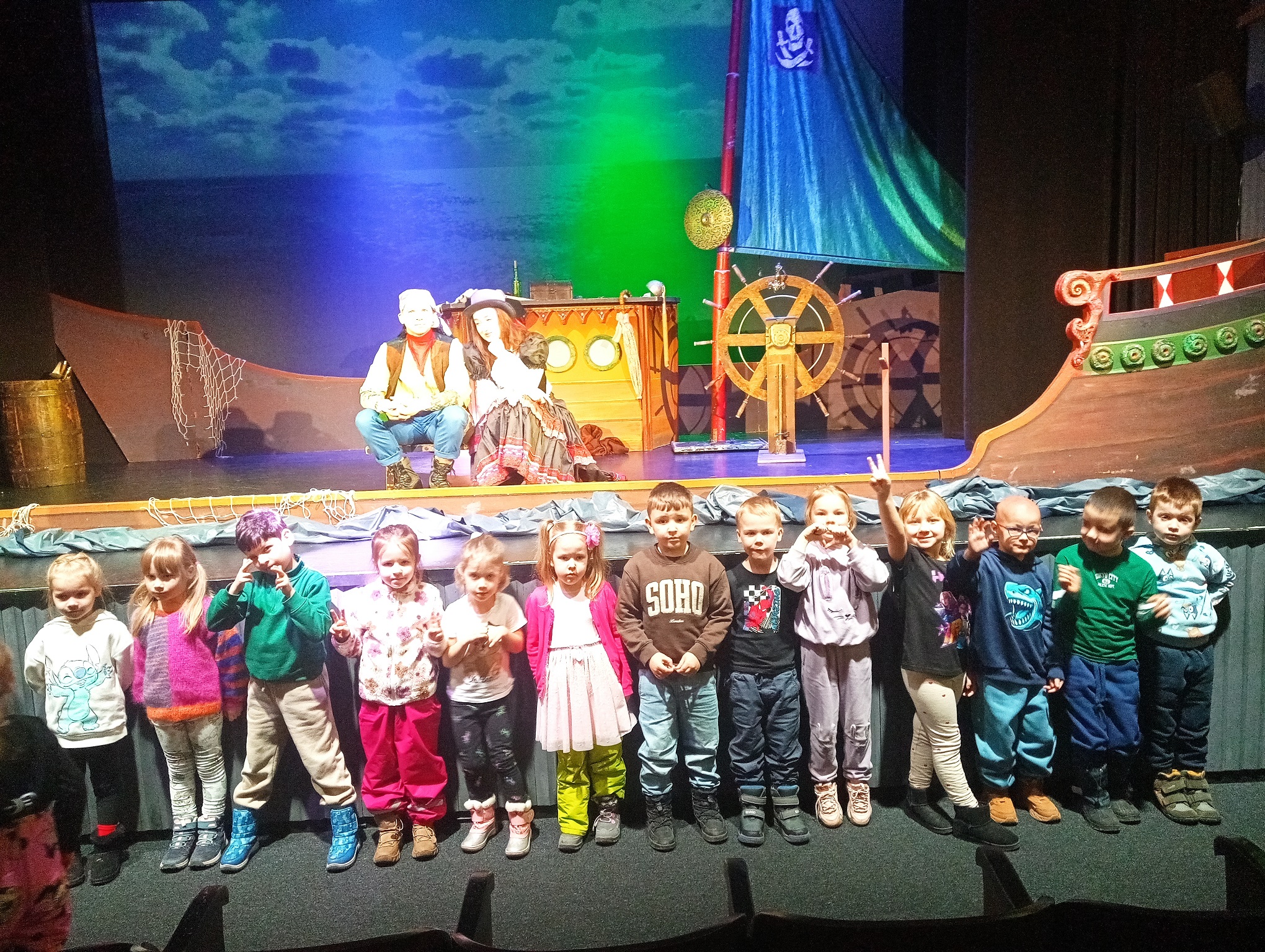 Dzieci 23 stycznia, poszły z nauczycielkami do Teatru Piccolo na przedstawienie pt. „Skarb Kapitana Haka”. Każda wizyta w teatrze niesie pozytywny wpływ na przedszkolaki, które uczą się kulturalnego zachowania w miejscu publicznym i uwrażliwiają się na sztukę. Słuchanie bajek i czytanie książek rozwija intelekt dziecka, poprawia jego pamięć, poszerza wyobraźnię i słownictwo. Teatr sprawia, że pokazywane obrazy zapadają nam głęboko w pamięć, ponieważ scenografia, muzyka i żywe słowo wzmacniają przekaz. Przesłanie spektaklu obejrzanego przez dzieci było czytelne i proste: pieniądze i bogactwa nie zastąpią nam takich wartości jak kochająca i wspierająca się rodzina! Najbliżsi są naszym prawdziwym skarbem i liczy się czas z nimi spędzony!