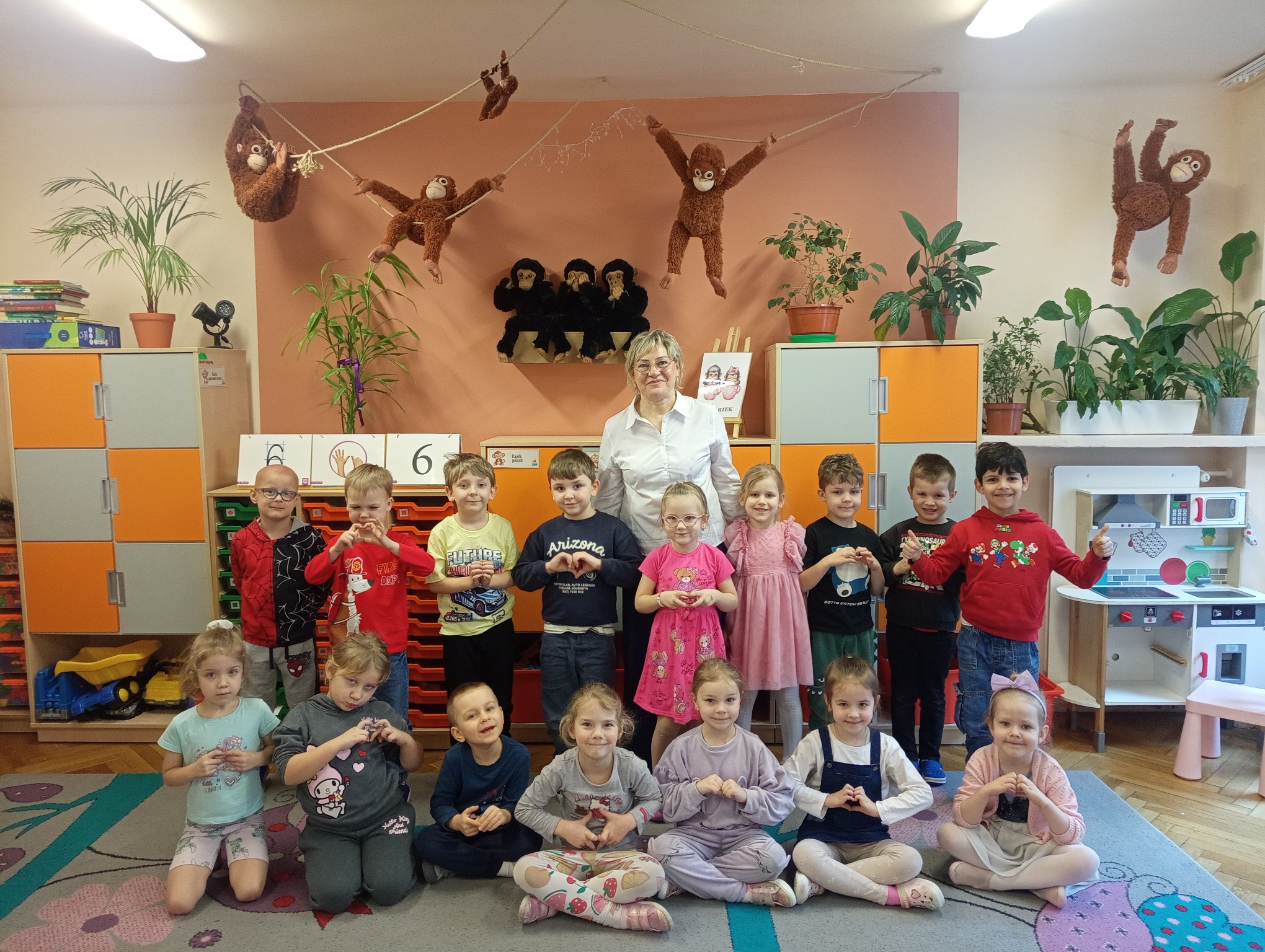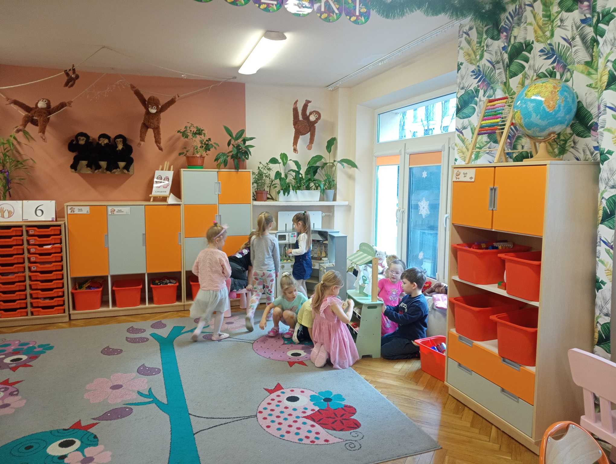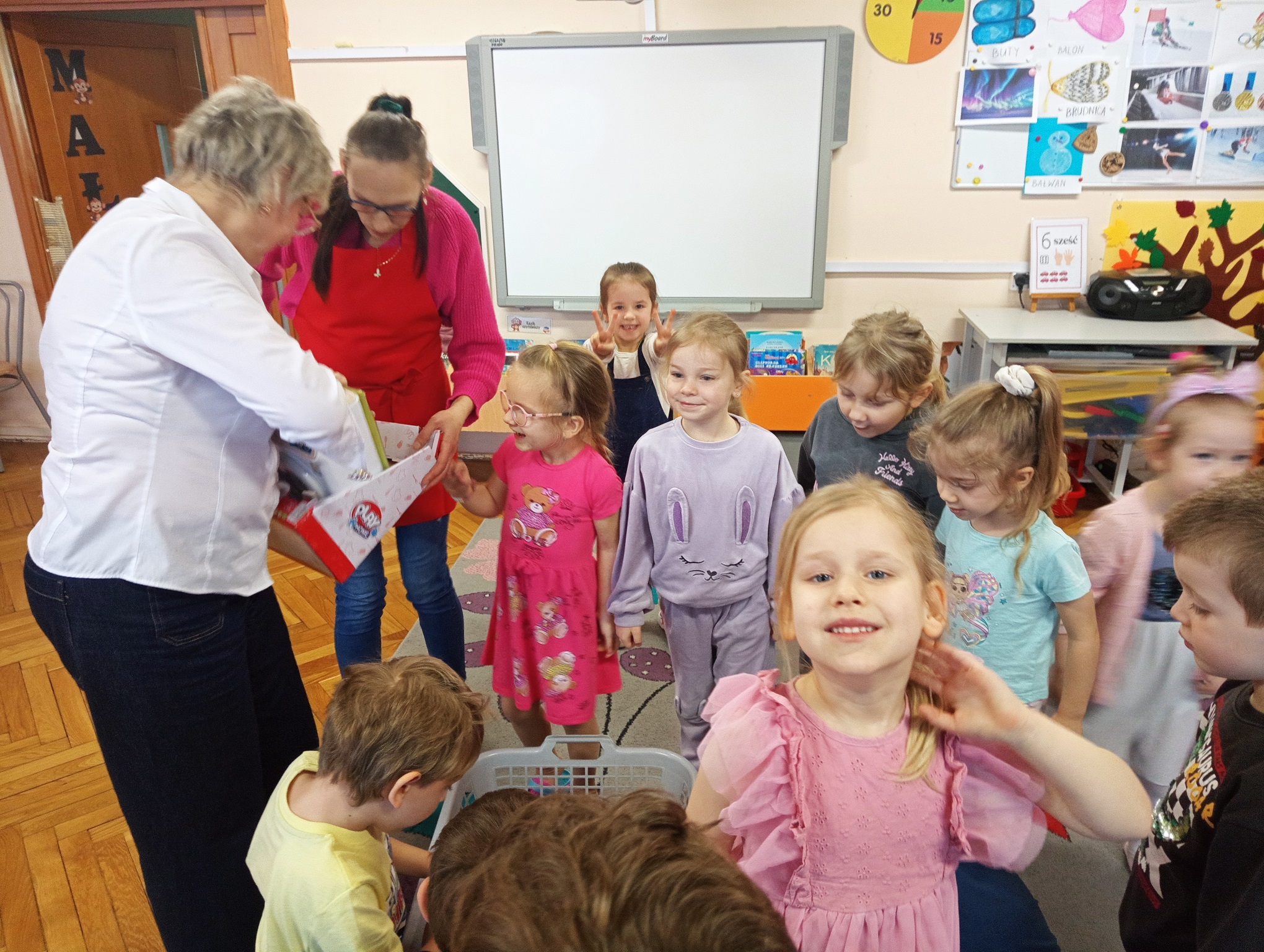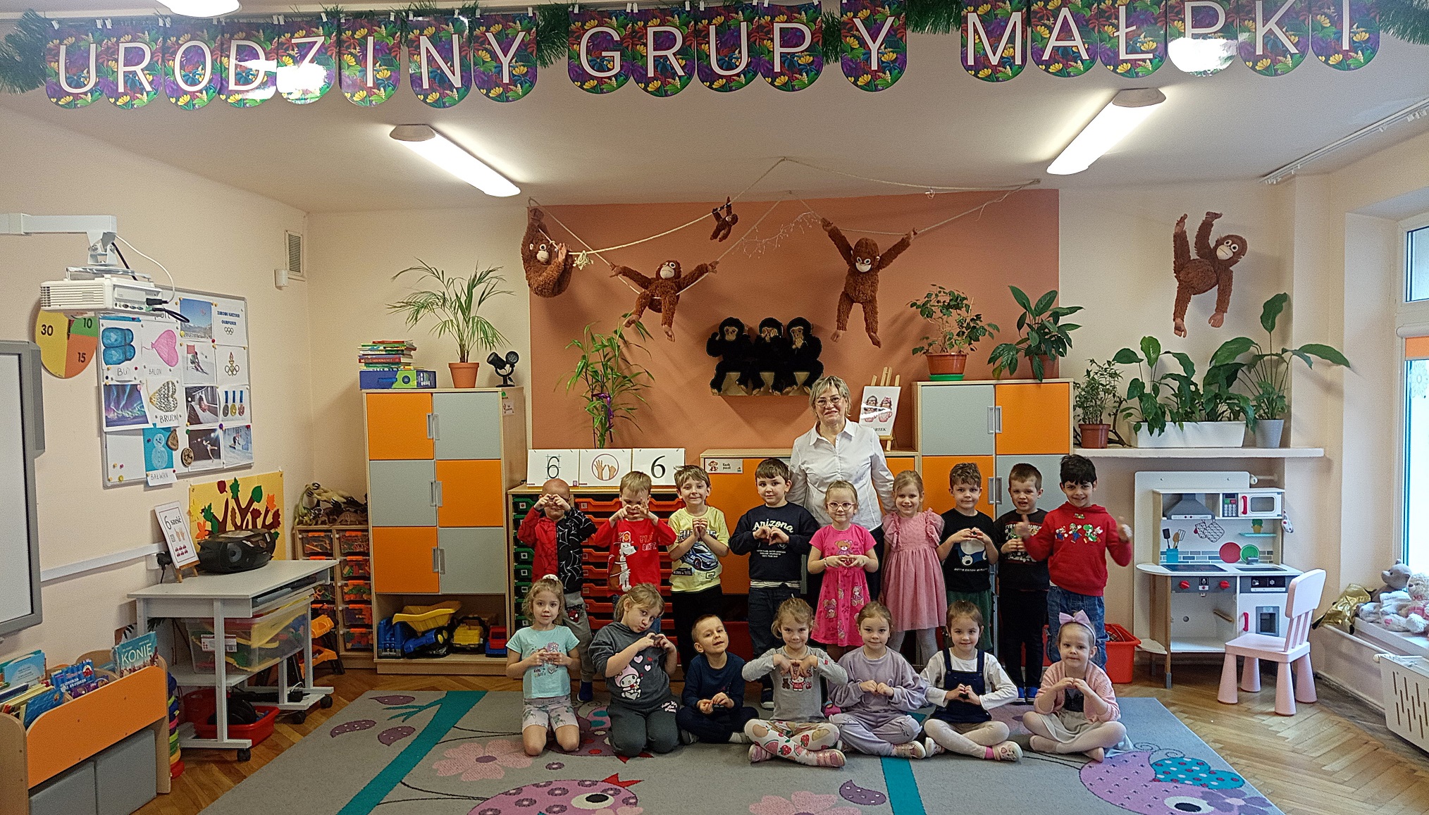 Dzieci uwielbiają spędzać czas w przedszkolu na zabawach. Do każdej grupy przedszkolnej zostały zakupione nowe zabawki, aby dzieci będąc w każdej sali mogły cieszyć się zabawą. "Urodzinowe prezenty" mają na celu rozwijanie kompetencji społecznych takich jak współpraca, czekanie na swoją kolej, rozwiązywanie konfliktów, umiejętności dzielenia się zabawkami oraz dbania o rzeczy. Dla chłopców i dziewczynek z grupy "Małpek" została zakupiona duża drewniana kuchnia, pralka, mikrofalówka, stragan z drewnianymi warzywami i owocami, drewniany dźwig, symulator samochodowy oraz małpki symbolizujące unikanie negatywnych wpływów. W dniu "urodzin grupy" nie mogło zabraknąć urodzinowego tortu, który został podany na podwieczorek wraz z kolorowymi kanapkami. Przedszkolaki pragną podziękować jeszcze raz za piękne prezenty. Dzieci bardzo chętnie przychodzą do przedszkola, by w nim spędzić każdy wspaniały dzień.