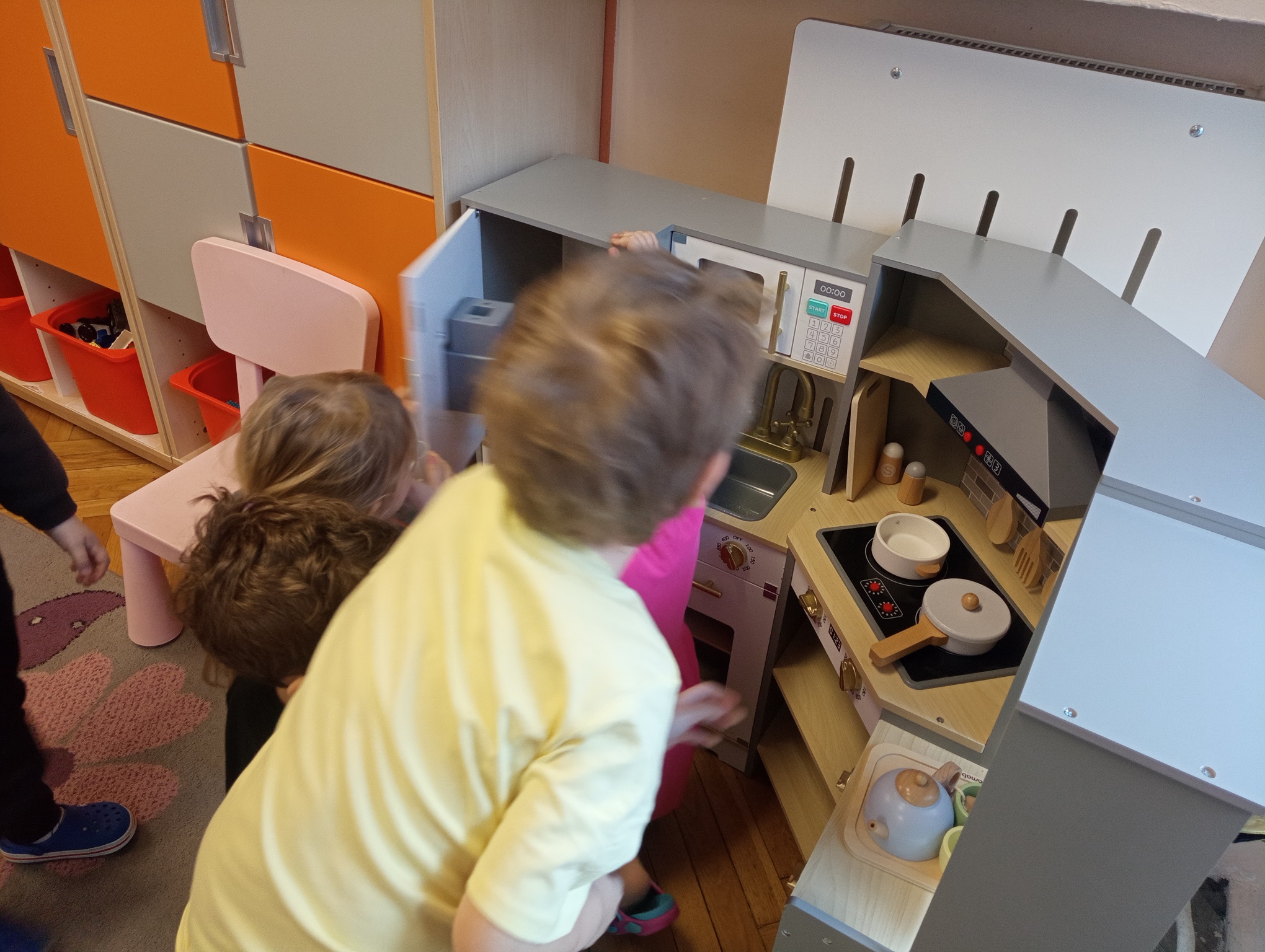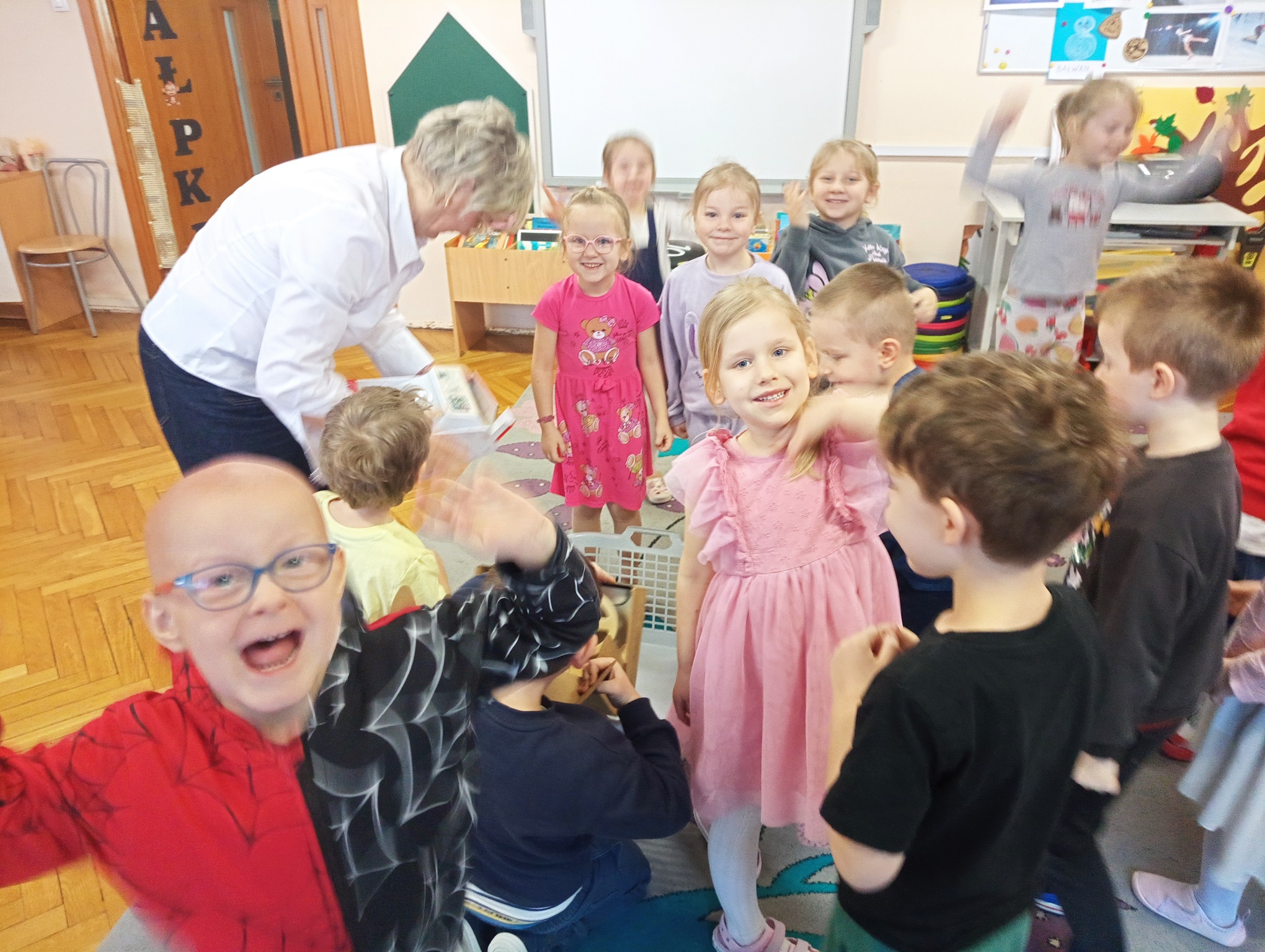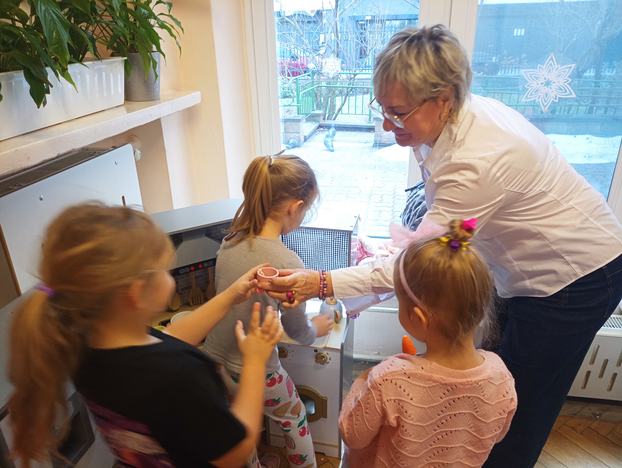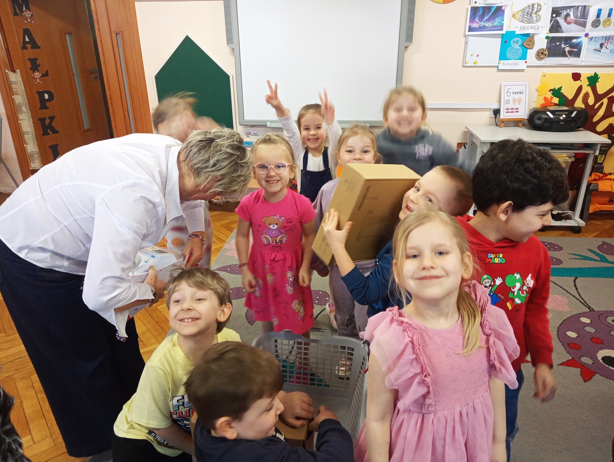 Dzieci uwielbiają spędzać czas w przedszkolu na zabawach. Do każdej grupy przedszkolnej zostały zakupione nowe zabawki, aby dzieci będąc w każdej sali mogły cieszyć się zabawą. "Urodzinowe prezenty" mają na celu rozwijanie kompetencji społecznych takich jak współpraca, czekanie na swoją kolej, rozwiązywanie konfliktów, umiejętności dzielenia się zabawkami oraz dbania o rzeczy. Dla chłopców i dziewczynek z grupy "Małpek" została zakupiona duża drewniana kuchnia, pralka, mikrofalówka, stragan z drewnianymi warzywami i owocami, drewniany dźwig, symulator samochodowy oraz małpki symbolizujące unikanie negatywnych wpływów. W dniu "urodzin grupy" nie mogło zabraknąć urodzinowego tortu, który został podany na podwieczorek wraz z kolorowymi kanapkami. Przedszkolaki pragną podziękować jeszcze raz za piękne prezenty. Dzieci bardzo chętnie przychodzą do przedszkola, by w nim spędzić każdy wspaniały dzień.